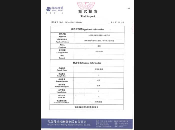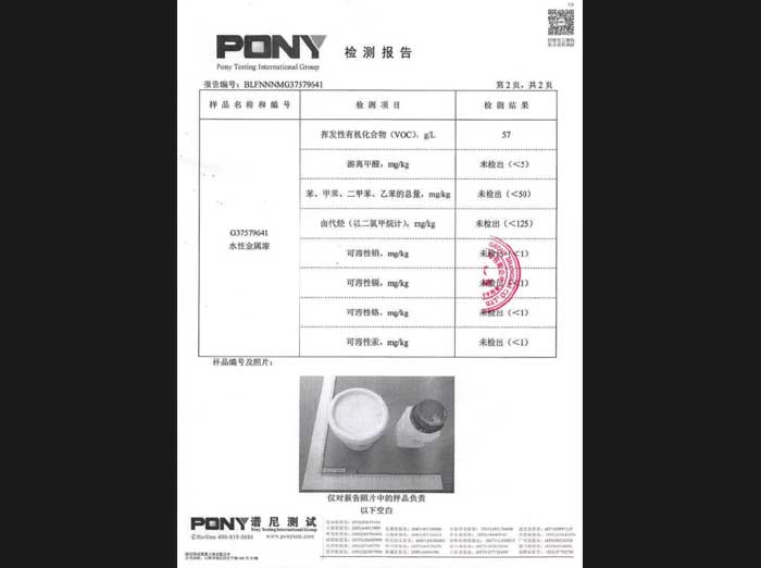 水性金屬漆檢測報告